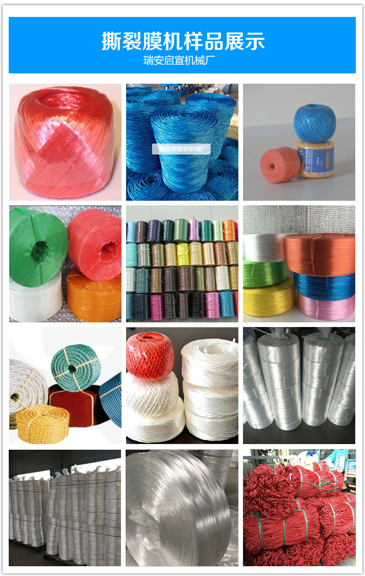 適用于PP和PE的新料、再生料(聚和聚)生產(chǎn)各種規(guī)格撕裂膜和捆扎繩。